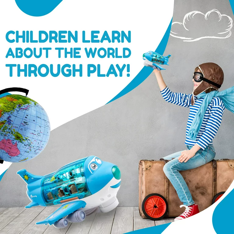 • ✅Dazzling Lights: Start The Toy Plane And The Plane Will Fly Automatically, Emitting Colourful Lights And Realistic Plane Sounds, Like A Pilot, Helping Children Their Imagination, Hand-Eye Coordination, Perception, And Visual Skills, For Quiet Play – When Not In Use Safely There Is An On/Off Switch From The Bottom Of The Toy To Turn Off The Sound.