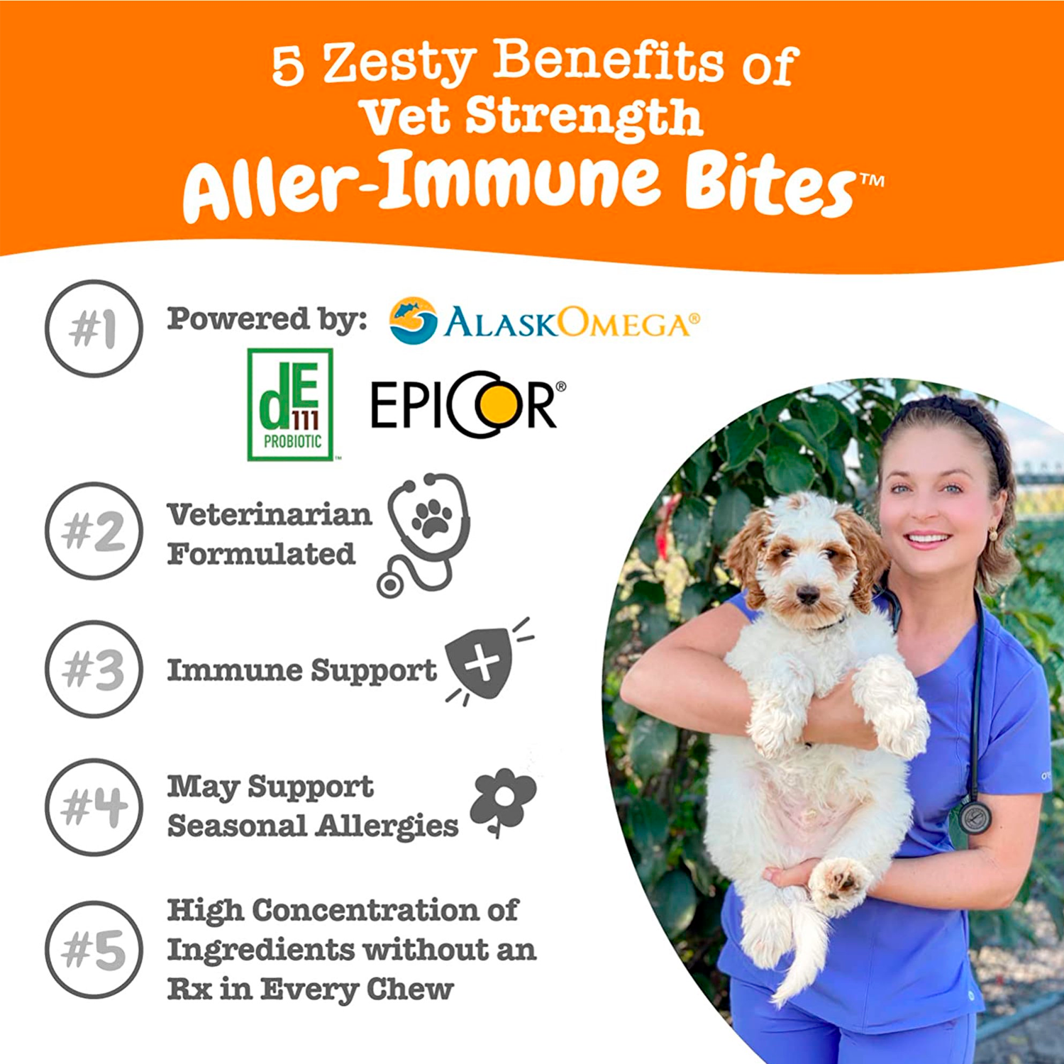 Unleash the power of Vet Strength Aller-Immune Bites for Dogs – a premium solution crafted to support your canine companion’s immune system.